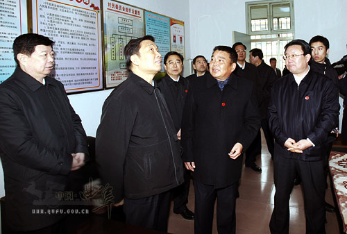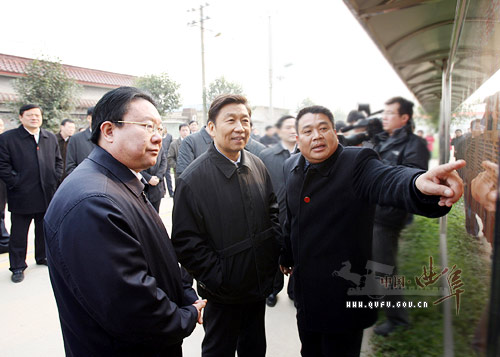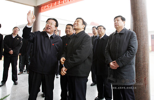 省委書記、省人大常委會主任姜異康,省委副書記、省長姜大明,省委副書記、省政協(xié)主席劉偉;中央組織部秘書長鄧聲明;省委常委、秘書長王敏,省委常委、組織部長高曉兵;濟寧市委書記、市人大常委會主任張振川,濟寧市委副書記、市長梅永紅,濟寧市委副書記張術(shù)平,濟寧市委常委、秘書長陳民,濟寧市委常委、組織部長何思清;曲阜市委書記、市人大常委會主任李長勝,曲阜市委副書記、代市長楊鳳東,曲阜市委常委孔令玉,曲阜市委常委、組織部長馬建國等陪同考察。