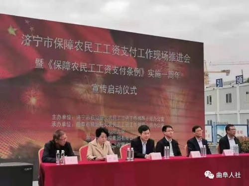 4月30日,濟寧市保障農(nóng)民工工資支付工作現(xiàn)場推進會暨《保障農(nóng)民工工資支付條例》(以下簡稱《條例》)實施一周年宣傳啟動儀式在我市舉行。會議主要任務(wù)是以《條例》宣傳為契機,對落實保障農(nóng)民工工資支付工作各項制度進行安排部署,不斷提升保障農(nóng)民工工資支付工作法治化、規(guī)范化水平。濟寧市人社局黨組成員、市社保中心黨組書記、主任劉西波出席會議并講話,我市市委常委、副市長李強發(fā)表致辭。