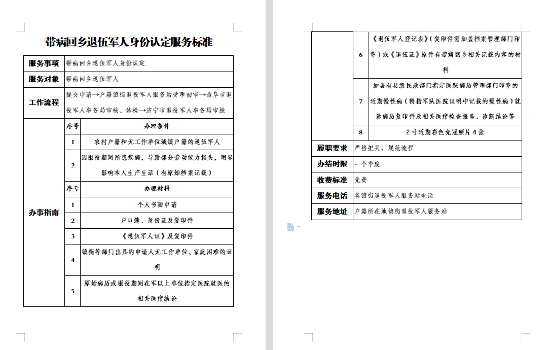 帶病回鄉(xiāng)退伍軍人身份認(rèn)定服務(wù)標(biāo)準(zhǔn)