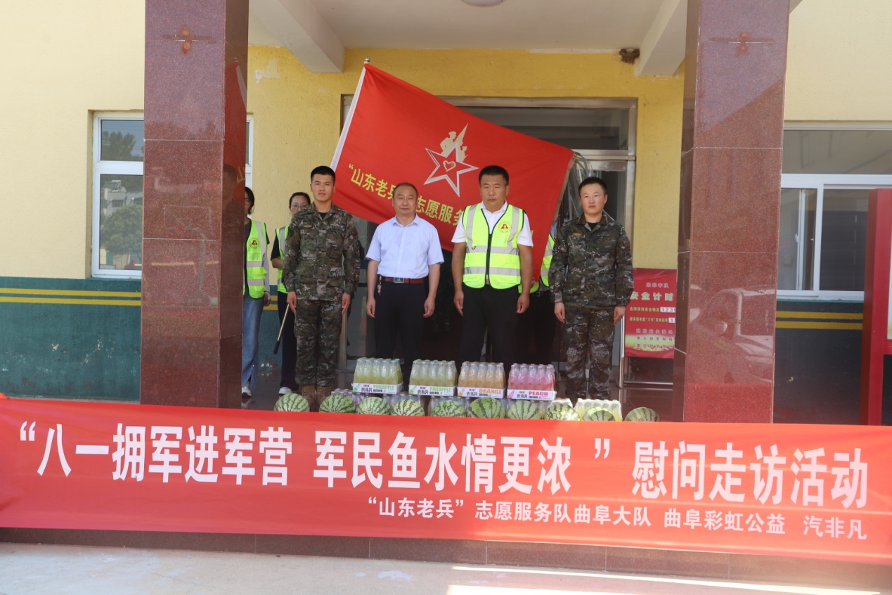 今年是紀念延安雙擁運動80周年,中國人民解放軍建軍96周年。8月1日,“山東老兵”志愿服務隊曲阜大隊聯合曲阜市彩虹公益服務中心、愛心擁軍企業汽非凡飲料走進駐曲部隊共同開展“八一擁軍進軍營·軍民魚水情更濃”慰問走訪活動。