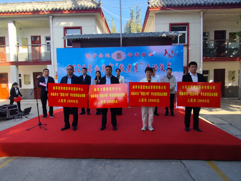 曲阜市嘉盟物業管理有限公司、曲阜市康健照料中心、山東力勤物業服務有限公司、曲阜家和居家養老服務中心等愛心企業紛紛響應號召,踴躍參與捐贈,向曲阜市“儒意夕陽”孝老慈善基金各捐贈人民幣20000元和各類物資慰問品。同時,為愛心企業代表頒發捐贈證書。