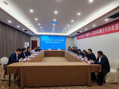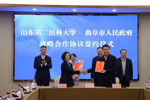 山東第二醫(yī)科大學(xué)副校長盧國華與曲阜市政府副市長侯晨碩共同簽訂了《戰(zhàn)略合作協(xié)議》。