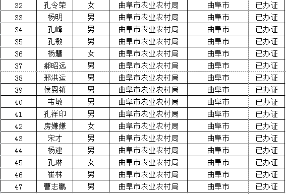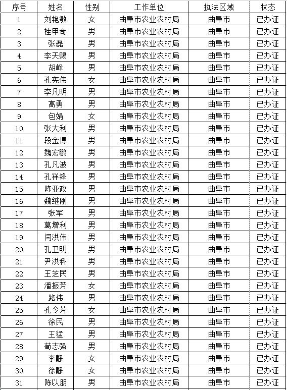 曲阜市農業農村局行政執法人員信息公示