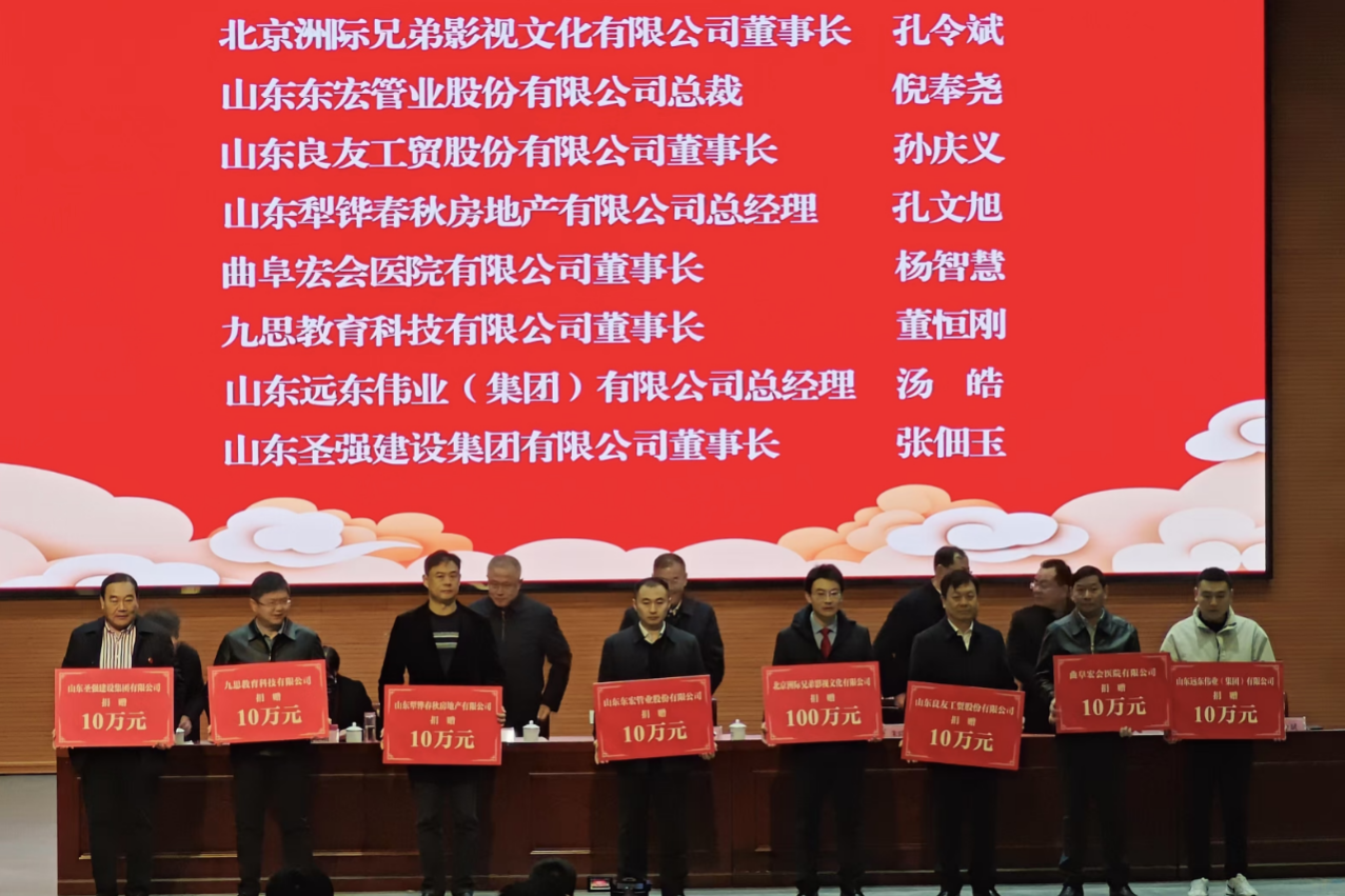 12月25日,曲阜杏壇教育基金啟動(dòng)暨捐贈(zèng)儀式舉行。市委副書記、市長崔加清,市人大常委會(huì)主任朱險(xiǎn)峰,市政協(xié)主席董洪波等市領(lǐng)導(dǎo)參加活動(dòng)。
