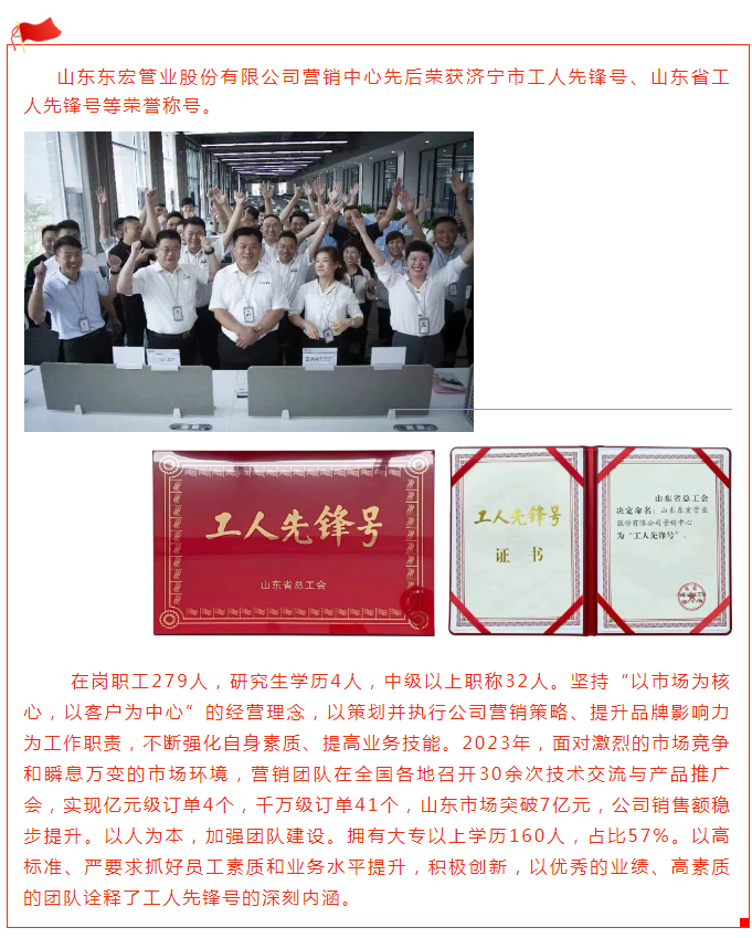 2024年山東省工人先鋒號——山東東宏管業股份有限公司營銷中心