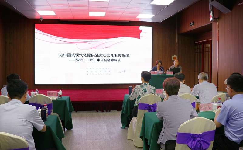 會議期間,舉行了“齊魯農工大講堂”,濟寧市委黨校黨委委員、副校長、一級調研員王峰圍繞“學習貫徹中共二十屆三中全會精神”作了專題輔導報告;開展了紀律學習教育,觀看《法不容殊》警示教育片;組織分組討論,圍繞學習中共二十屆三中全會精神、習近平總書記視察山東重要講話精神、農工黨十七屆六次中常會精神以及紀律學習教育開展情況進行研討交流;前往德廉文化教育基地教學點開展紀律學習教育專題現場教學。