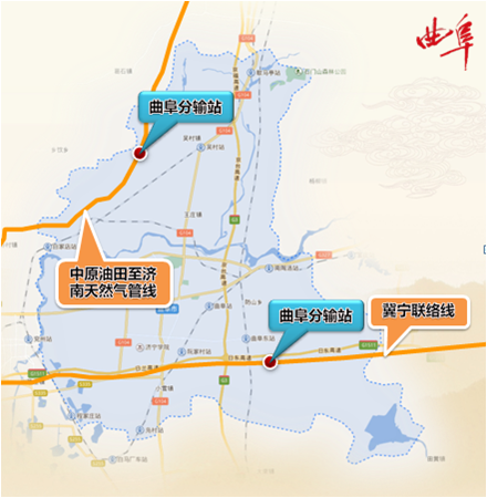 中原油田至濟(jì)南天然氣管線、西氣東輸冀寧聯(lián)絡(luò)線貫穿曲阜,設(shè)有2處分輸站和1處加氣母站,天然氣供應(yīng)充足。