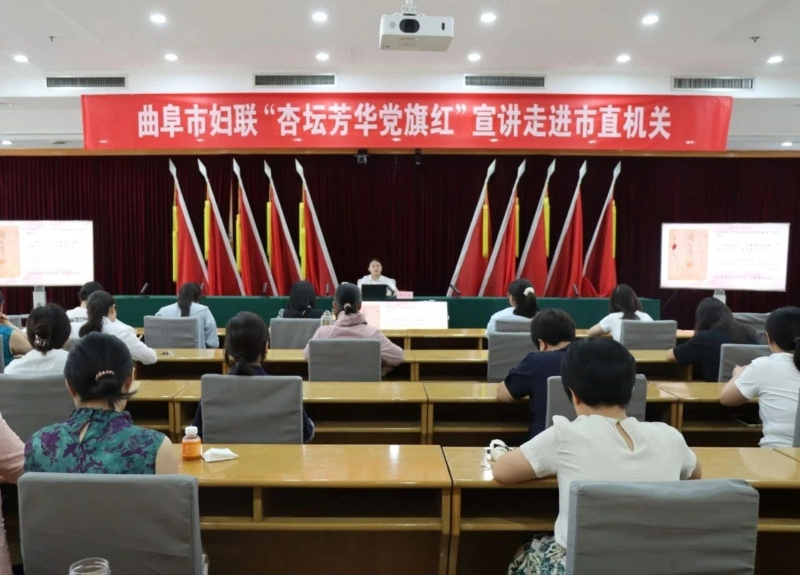 近日,曲阜市婦聯組織開展“杏壇芳華黨旗紅”宣講走進市直機關活動,我校教師李亞麗應邀為來自全市各市直部門單位的40余名女干部開展紅色宣講。