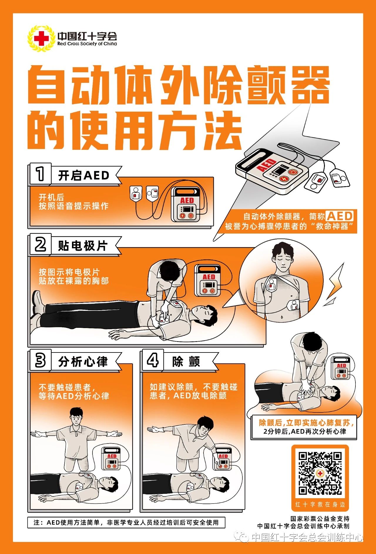 中國紅十字會總會訓練中心“自動體外除顫器的使用方法”宣傳海報