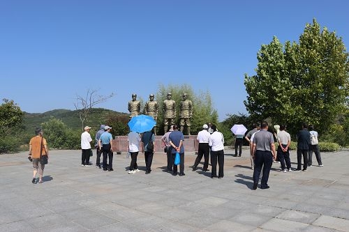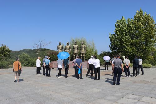在尼山紅色教育基地,老同志們認真觀看了展館內珍貴的革命文物和歷史照片,詳細了解尼山地區革命斗爭的光輝歷程。一件件實物、一幅幅圖片,生動再現了革命先輩為民族獨立和人民解放事業英勇奮斗的感人事跡。在莊嚴肅穆的氛圍中,老黨員們瞻仰了尼山區抗日烈士紀念碑,向為民族獨立和人民解放英勇獻身的革命先烈默哀致敬。