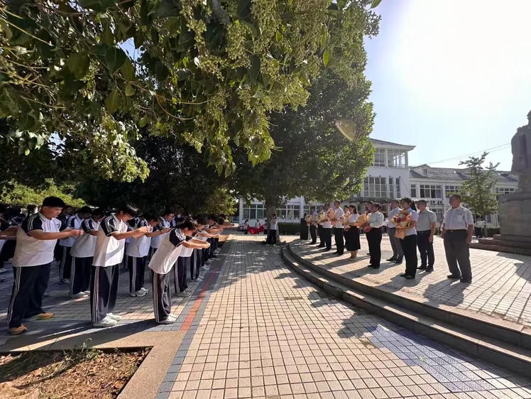 時莊街道中學師生齊聚六藝廣場,以一場莊重典雅的“敬師禮”,傳承中華優秀傳統禮儀,厚植師生情誼,為新學期注入崇德尚學的精神力量。